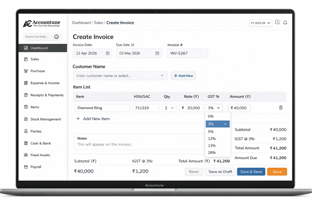 You run a hardware store or electronics shop: You need good inventory management alongside GST billing. Accountune or Vyapar. Both handle product-based businesses well at reasonable prices.